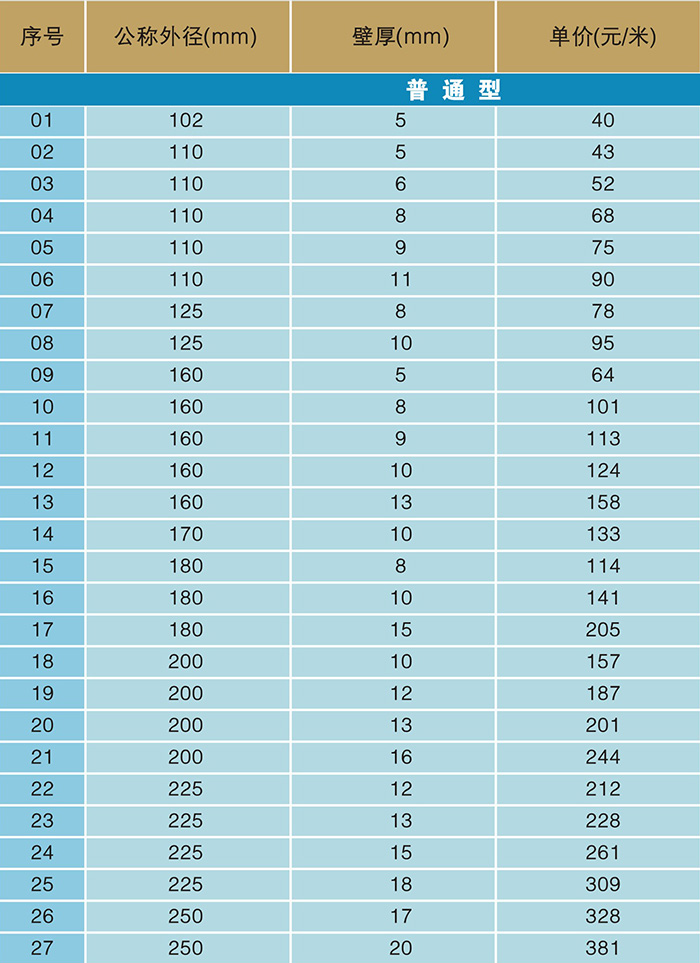 廣泛應用在城市道路建設、小區開發、園林景觀、企業建設等場所,作為電力、路燈、草坪燈、庭院燈、小區智能化、有線電視、通訊、智能交通等電纜的穿線護套管。